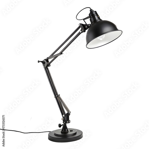 Adjustable black desk lamp isolated on white or transparent background