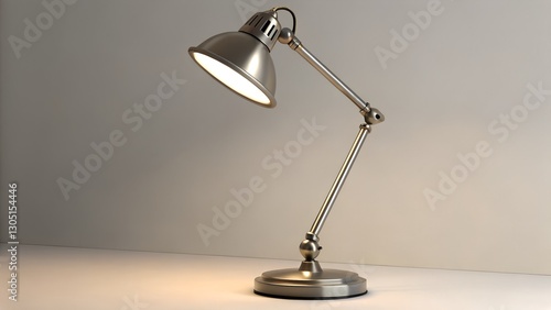 lamp, desk, adjustable, metal, lighting, illumination, office, home, workspace, study, design, modern, contemporary, style, interior, light, bright, metallic, shade, footed, arm, fixture, electric, energy, brightness, furniture, equipment, table, reading, work, home office, ambient, atmosphere, gleam, shine, surface, grey, silver, nickel