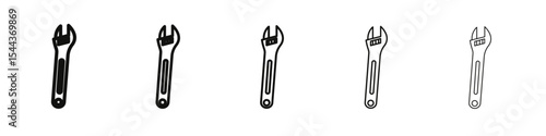 Adjustable wrench icon vector outline set illustration sign