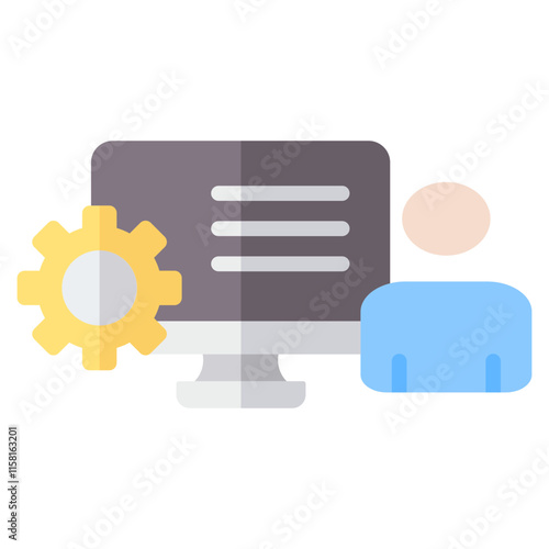 computer, gear, configuration, user, administration, management, setting, adjustment, icon, flat