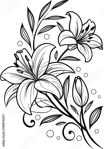 flower, floral, pattern, ornament, vector, leaf, design, decoration, illustration, art, plant, element, seamless, nature, black, decor, tattoo, wallpaper, swirl, tree branch, ornate, flower, silhouette, style, vintage
