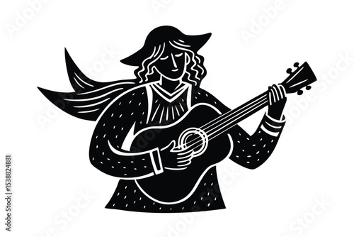guitar, music, musician, guitarist, rock, instrument, playing, electric, play, player, boy, rocker, entertainment, hat, cowboy, singer, fun, vector, sound, people, musical, concert, performer, person, cartoon
