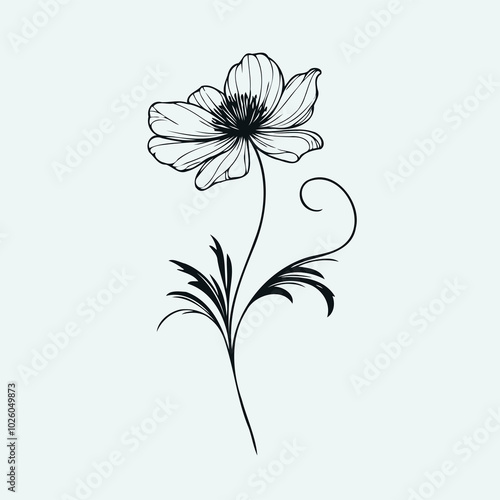logotype, vector, line art, outline, black-and-white, floral, illustration, flower, decoration, vignetting, cut-out, pencil drawing, design element, abstract flower, bloom, blossom, botanical, flower, plant