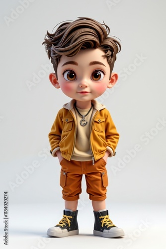 Adorable 3D Rendered Cartoon Boy Stylish Outfit Brown Hair Casual Pose