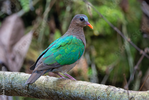adorable and cute Common emerald dove bird on deep rainforest jungle