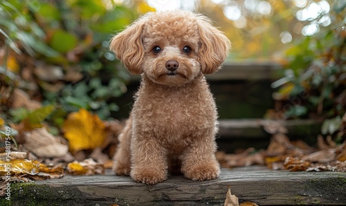 apricot, poodle, toy, dog, puppy, autumn, leaf, fall, step, wooden, sitting, cute, adorable, fluffy, small, brown, pet, animal, furry, portrait, outdoors, nature, park, garden, happy, playful, sweet, charming, elegant, stylish, groomed, healthy, vibrant, majestic, pretty, lovely, gorgeous, photogenic, captivating, delightful, enchanting, mesmerizing, marvellously, amazing, breathtaking, stunning, impressive, magnificent