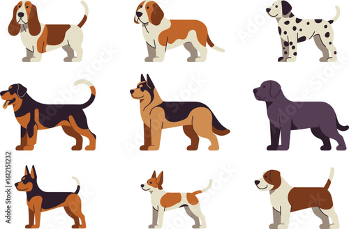 dog, dog, pet, pet, animal, animal, puppy, canino, mammal, pedigree, breed, purebred, domestic, cute, adorable, playful, friendly, companion, illustration, cartoon, character, design, graphic, vector, art, icon, set, collection, diversity, variety, basset hound, beagle, dalmatian, rottweiler, german shepherd dog, labrador, doberman, terrier, spaniel, animal welfare