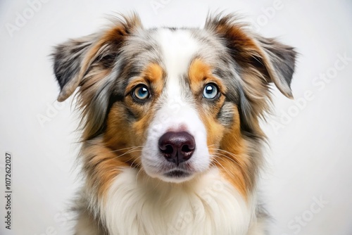 Adorable Australian Shepherd Dog Posing for the Camera Against a Clean White Background, Showcasing Its Playful Nature and Beautiful Coat in Captivating Food Photography Style