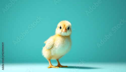 Adorable Baby Chick on Teal Background Cute Fluffy Chicken