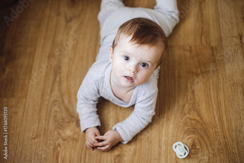 baby, happy, crawling, smiling, adorable, lying, floor, wooden, cute, infant, portrait, pacifier, children, development, background, beautiful, boy, care, comforter, domestic, emotion, expression, happiness, healthy, joyful, children, lifestyle, little, lovely