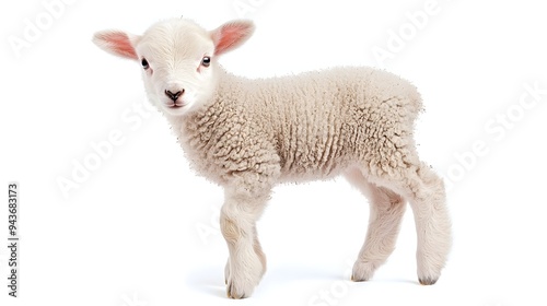 Adorable Baby Lamb Standing on All Fours Isolated on White Background