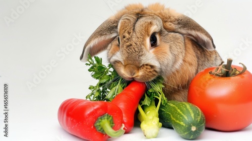 Adorable Baby Rabbit: A Pet Enjoying Fresh Vegetables in a Farm Setting