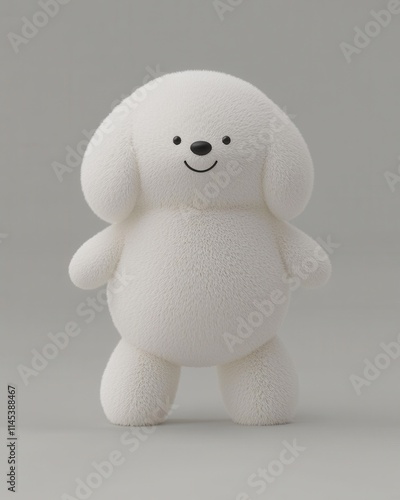Adorable bichon frise plush toy studio setting cute character design neutral background front view softness concept