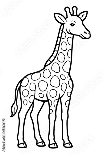 Adorable Black and White Giraffe Coloring Page for Kids: A Simple, Fun, and Educational Printable Outline Drawing of a Cute Safari Animal with Unique Spots for Toddlers, Preschoolers, and Elementary S