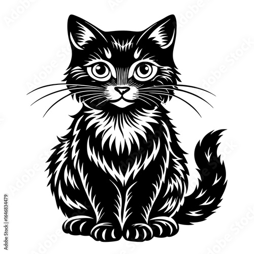 black, animal, pet, felino, cute, adorable, illustration, design, logotype, mascot, playful, whisker, fur, domestic, sitting, happy, friendly, companion, elegant, graphic, art, drawing, cartoon, clip art, isolated, white, charming, sweet, portrait, face, eye, expressive, character, style, creative, branding, symbol, funny, whimsical, modern, minimalist, simple, vector, outline