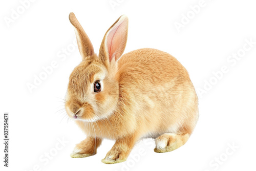 Adorable brown rabbit sitting on white background, perfect for pet-themed visuals and nature-inspired content.