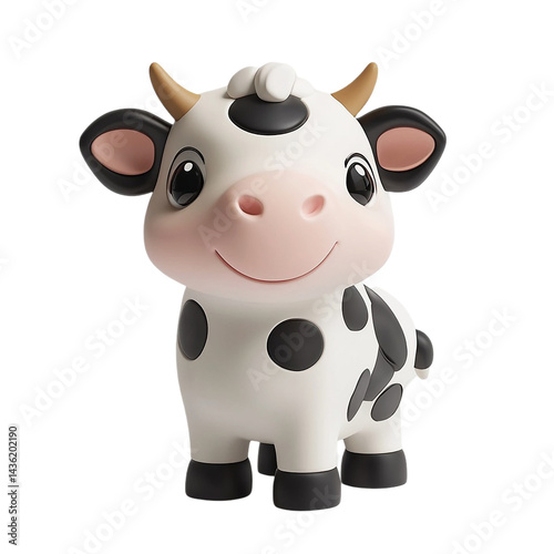 Adorable Cartoon Cow Figurine isolated on transparent background