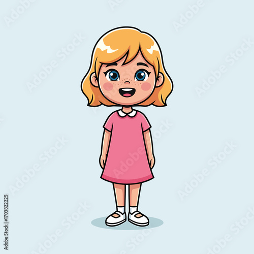 Adorable Cartoon Girl in Pink Dress Child Illustration