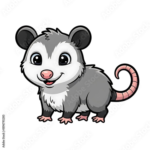 Adorable Cartoon Opossum Illustration on White.