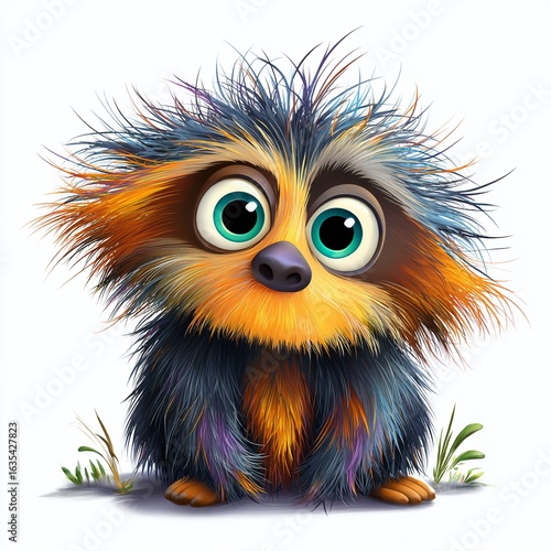 Adorable Cartoon Sloth with Wild Fluffy Hair A Delightful Illustration for Childrens Books Posters or Decor