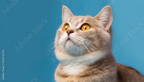 Adorable Cat Gazing Upward on a Solid Blue Background Perfect for Pet Lovers, Cat Enthusiasts, and Cute Animal Fans A Charming Banner to Brighten Your Day