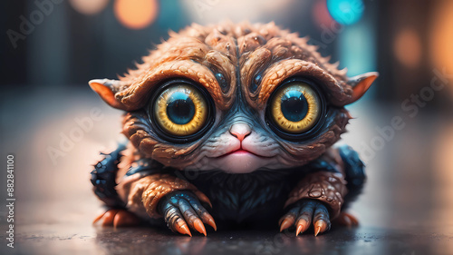 adorable creature with big reflective eyes, realistic , photography in soft light, long exposure, 8K resolution image, glossy and shiny.