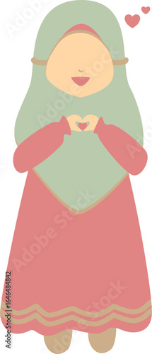 girl, woman, muslim, islamic, illustration, cartoon, character, cute, adorable, pastel, colours, pink, green, beige, nubes, love, affection, kindness, gentle, sweet, happy, cheerful, smiling, friendly, positive, tender, innocent, childlike, simple, minimalist, design, element, graphic, vector, artwork, digital, art, image, picture, background, pattern, template, greeting card, web, banner, children, children