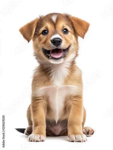 puppy, dog, cute, adorable, happy, pet, animal, doggy, brown, white, fluffy, small, young, sitting, background, white background, image, photo, picture, photo, canino, mammal, portrait, studio, isolated, buy, sell, adopt, pet