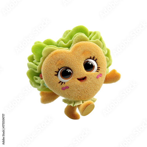 Adorable Heart-Shaped Sandwich Character, 3D Rendered Plush Toy
