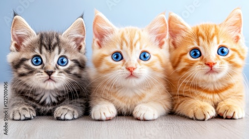 Adorable Kittens with Bright Blue Eyes Posing Together in a Row