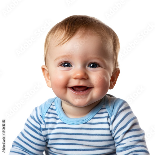 Adorable little baby boy with happy expression, isolated on transparent background.