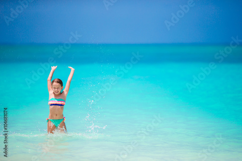 Adorable little girl have fun at shallow water during summer vacation
