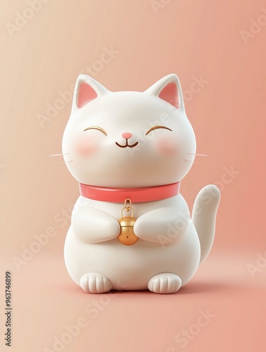 cat, lucky, adorable, illustration, pink, cartoon, digital, animal, three-dimensional, smiling, charme, bell, collar, japanese, minimalistic, cute, white, playful, joyful, fortune, asian, character, cultural, sweet, cheerful, art, design, fun