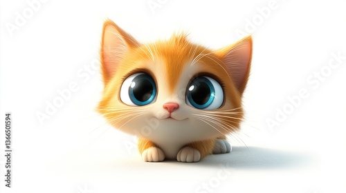 kitten, cat, cute, adorable, fluffy, orange, pet, animal, cartoon, three-dimensional, baby, small, furry, playful, happy, sweet, lovely, innocent, cheerful, paw, whisker, eye, big, blue, friends, companion, soft, charming, domestic, felino, mammal, young, tiny, pretty, pure, joyful, smiling, white, background, isolated, graphic, illustration, design, image