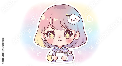 Adorable Pastel Rainbow Hair Chibi Girl Illustration