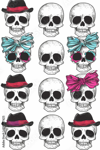 Adorable Skull Emoticons: Cute Skulls with Bows and Hats