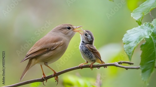 Adorable Songbird Perched on Branch in Lush Green Foliage