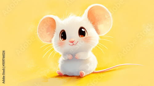 mouse, rodent, animal, cute, adorable, cartoon, pet, happy, smiling, soft, fur, big, eye, yellow, background, illustration, children, sweet, friendly, playful, innocent, whimsical, graphic, design, wallpaper, digital, art, fantasy, greeting, card, book, childcare center, decor, home, portrait