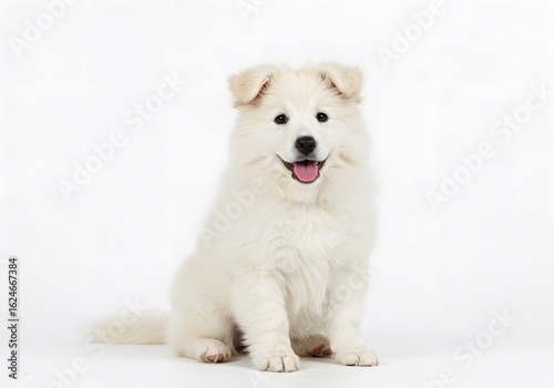 puppy, dog, canino, pet, animal, white, shepherd, swiss, breed, pedigree, cute, adorable, fluffy, happy, playful, young, studio, portrait, domestic, mammal, friends, companion, purebred, isolated, background, sitting, posing, looking, smiling, tongue, ear, eye, fur, furry, small, little, innocent, friendship, love, care, health, wellness, well-being, veterinary