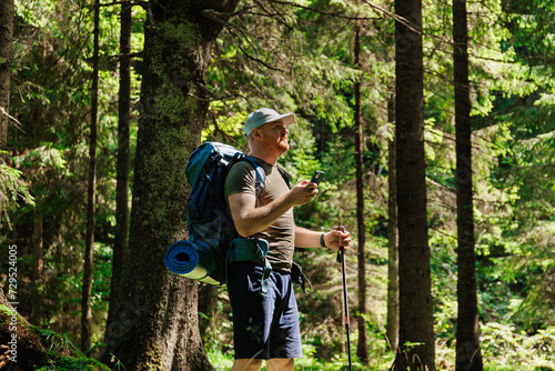 man, trekking, smartphone, hiker, forest, check, hike, location, explore, nature, male, adult, mobile, phone, adventure, contraption, device, global positioning system, backpack, cap, mat, racked, pole, browsing, surfing, activity, beard, wood, trip, connection, environment, destination, search, explorer, summer, guy, cyberspace, communicate, direction, read, guide, information, examine, mobile phone, greenery, navigate, expedition, half face, outdoors