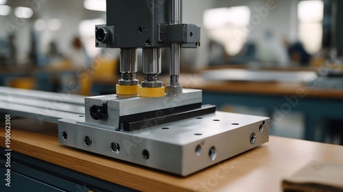 industrial, automation, production, manufacturing, component, pneumatic, precision, tool, equipment, mechanism, engineering, technology, processing, robotic, part, metal, steel, aluminium, workplace, indoor, closeup, detail, sharpened, sharp, metallic, shiny, clean, modern, technical, mechanical, yellow, grey, silver, efficiency, power, innovation, solution, system, control, device, grip, hold, worked, work, worked, movement, industry