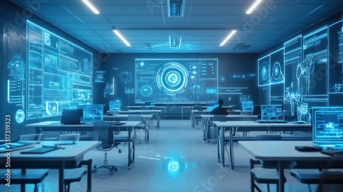 classroom, futuristic, technology, digital, learning, education, interaction, interface, ai, innovation, screen, student, virtual, cyberspace, advanced, cyber, holographic, projection, desk, datum, information, monitor, network, system, matrix, study, cognition, connection, communication, display, intelligence, modern, workstation, desktop, future, machine, programming, global
