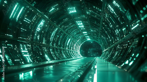 Advanced space technology and interstellar communication futuristic tunnel digital art sci-fi environment abstract viewpoint