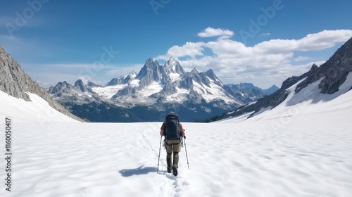 hiker, adventure, snow, mountain, landscape, trekking, nature, travel, exploration, scenery, wilderness, backpack, altitude, sky, sunny, tour tourism, fitness, journey, solitude, natural, beauty, terrain, scenic, fresh, crisp, expedition, sport, motion, summer, activity, white, ground, peak, distant, serene, vibrant, isolated, trail, exercise, view, cold, elevation, fresh air, leisure, peaceful, dramatic, picturesque