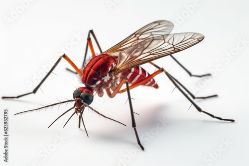 Aedes mosquito isolated on white background. Mosquitoes are carriers of dengue fever and malaria. Dengue, Chikungunya, Mayaro, Yellow fever. Generative Ai