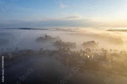 aerial, aerial view, ancient, autumn, background, beautiful, castle, colourful, countryside, dawn, drone, fog, foggy, island, lake, landscape, light, lithuania, mediaeval, mist, morning, nature, panorama, scenery, scenic, season, sky, spring, summer, sun, sunrise, sunset, tour tourism, trakai, travel, tree, view, vilnius