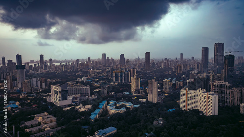 aerial photography, aerial view, cinematic, city landscape, cloud, cloudscape, dramatic sky, evening light, foggy, golden hour, humid, india, metropolitan, mist, monsoon, bombay, nature, overcast, rain, rain cloud, rainy season, reflections, skyline, stormy sky, sunset, travel, urban, urban life, weather