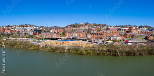 panorama, shutdown, university, virus, west virginia, aerial, building exterior, campus, city, city landscape, closed, downtown, drone, empty, from above, craggy, landscape, nobody, overview, panoramic, river, skyline, spring, sunny, sunshine, town, town center, tree