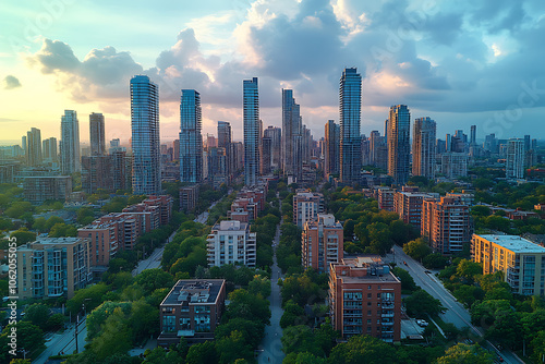 aerial view, city landscape, skyscraper, urban, modern architecture, tall building, city life, tower block, downtown, metropolitan, skyline, city landscape, city view, vibrant, business district, city skyline, architectural, dynamic, city lights