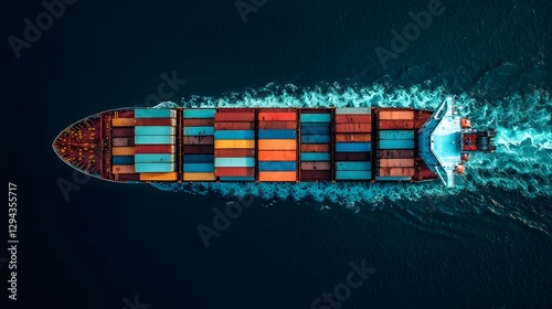 container ship, cargo ship, freight, transportation, logistic, ocean, sea, shipping, maritime, blue ocean, aerial view, industrial, business, import, export, delivery, merchandise, naval
